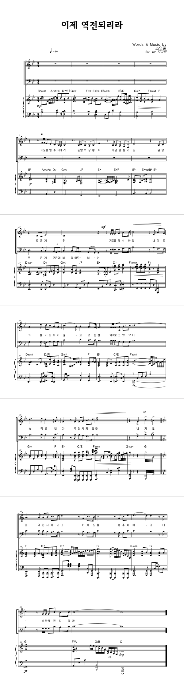 | 이제 역전되리라 | 성가 3부 + 피아노 반주 |