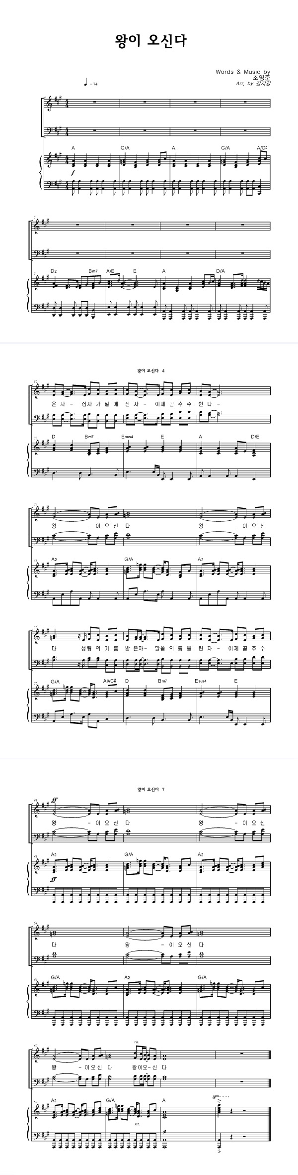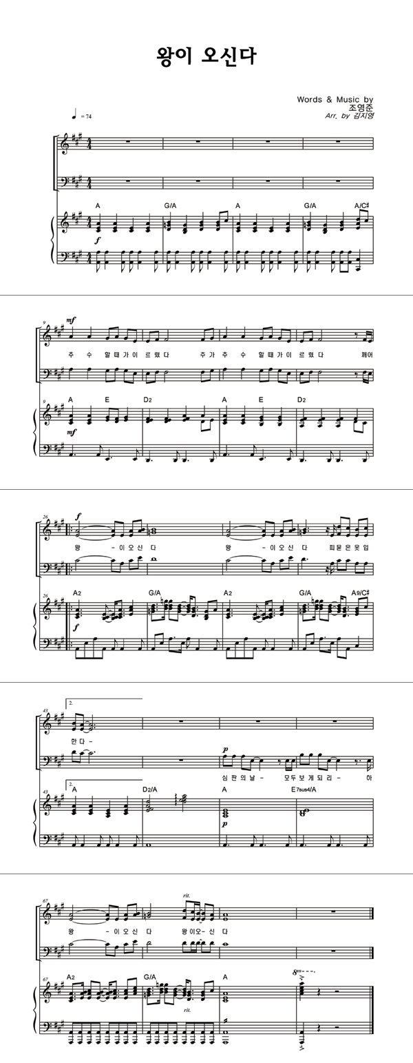 | 왕이 오신다 | 성가 4부 + 피아노 반주 |