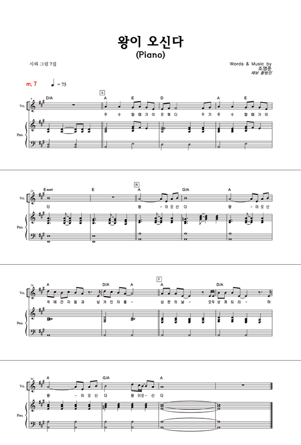 | 왕이 오신다 | 성가 3부 + 피아노 반주 |