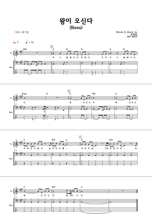 '왕이 오신다' 의 다른 악보형식