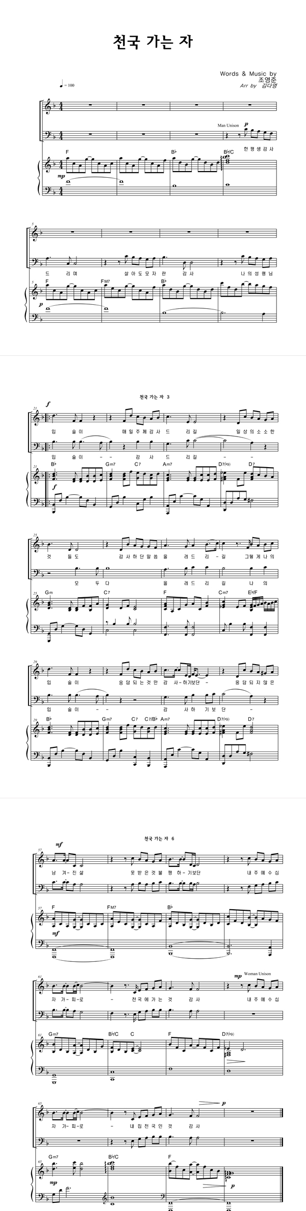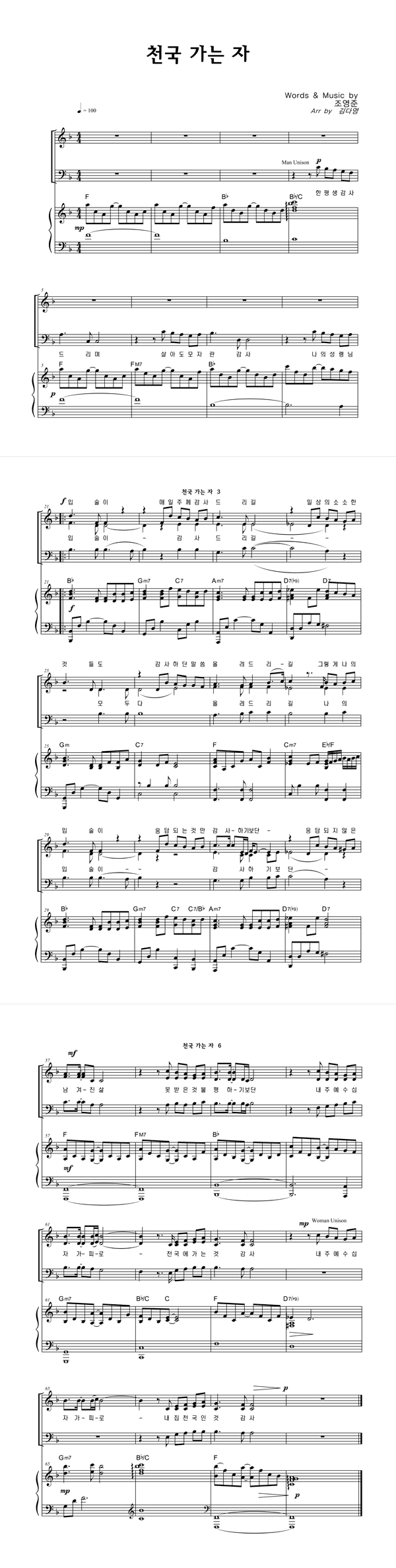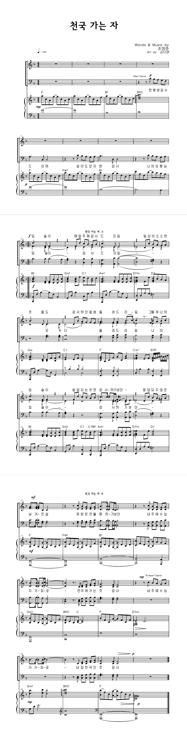 | 천국 가는 자 | 성가 3부 + 피아노 반주 |