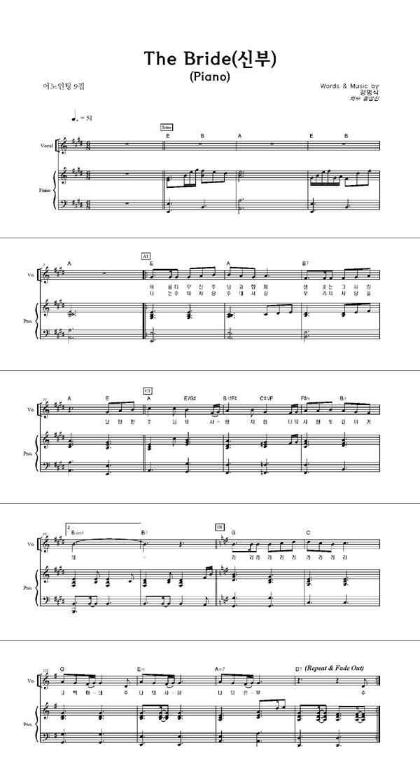 | The Bride(신부) | 성가 3부 + 피아노 반주 |