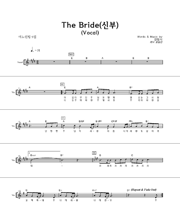 | The Bride(신부) | 성가 4부 + 피아노 반주 |