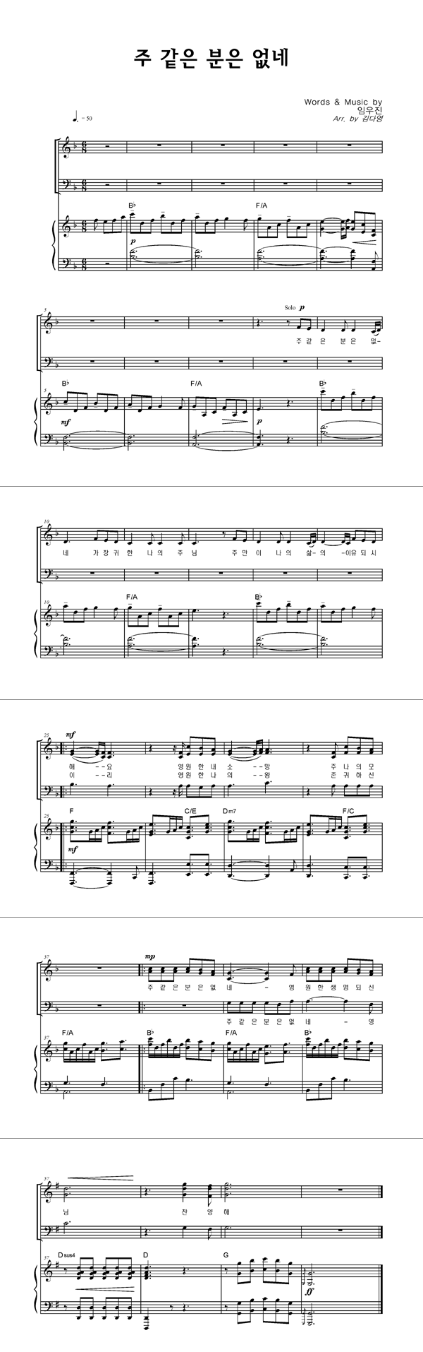 | 주 같은 분은 없네 | 성가 3부 + 피아노 반주 |