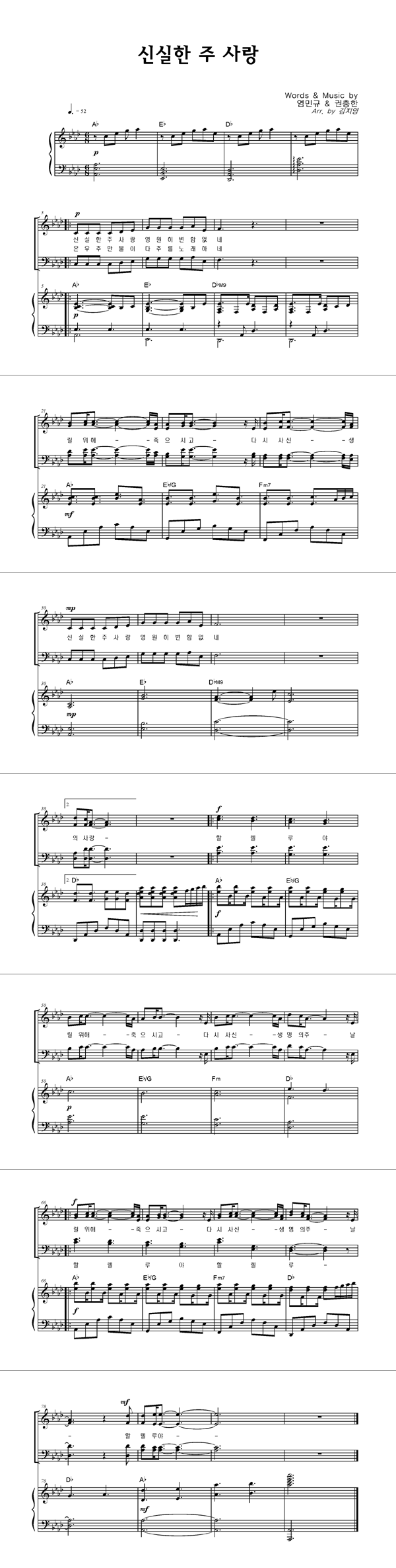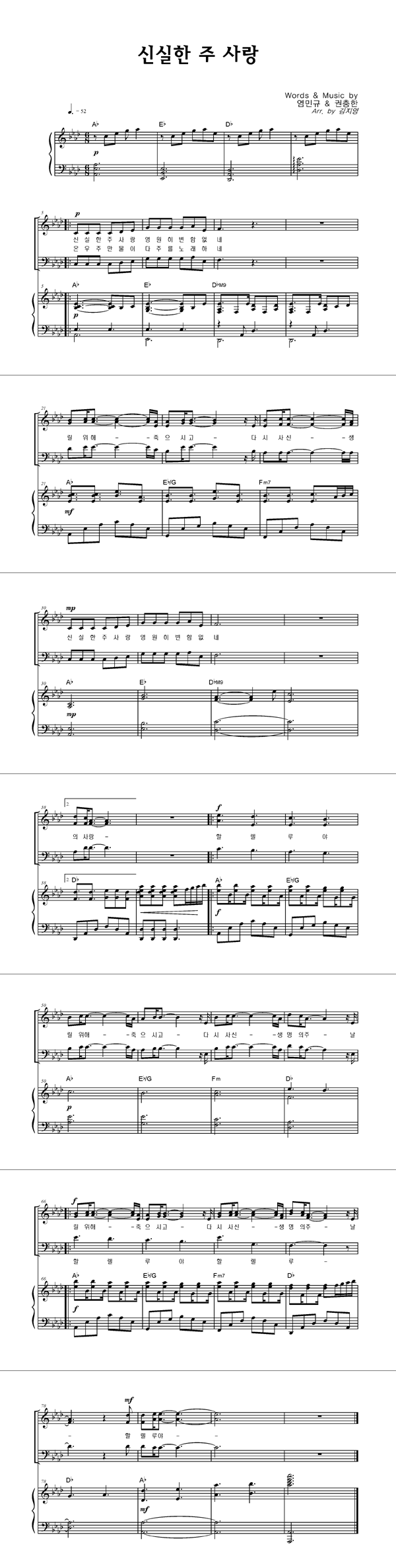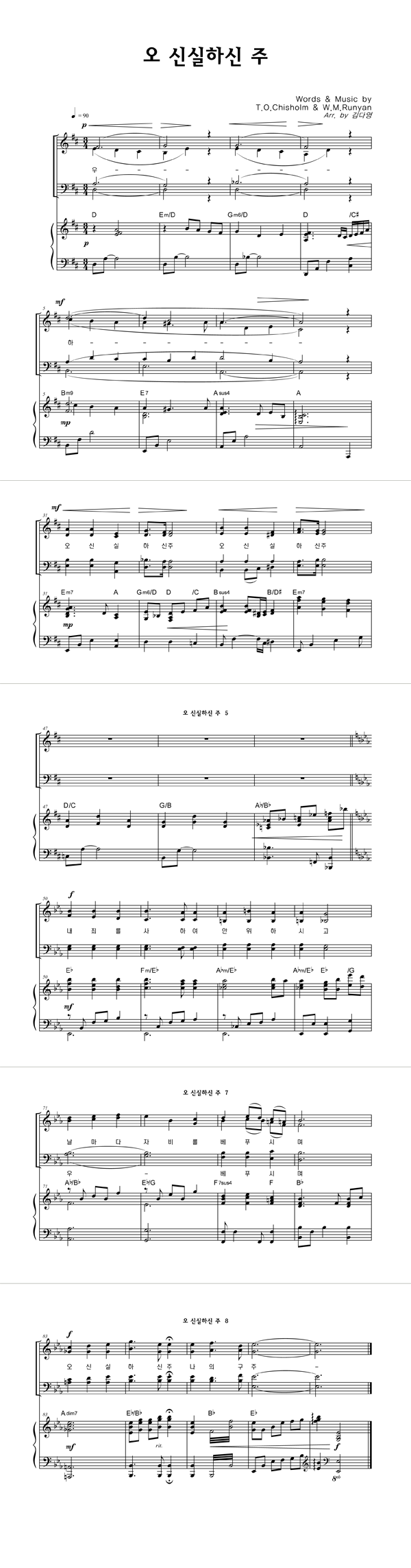| 오 신실하신 주 | 성가 4부 + 피아노 반주 |