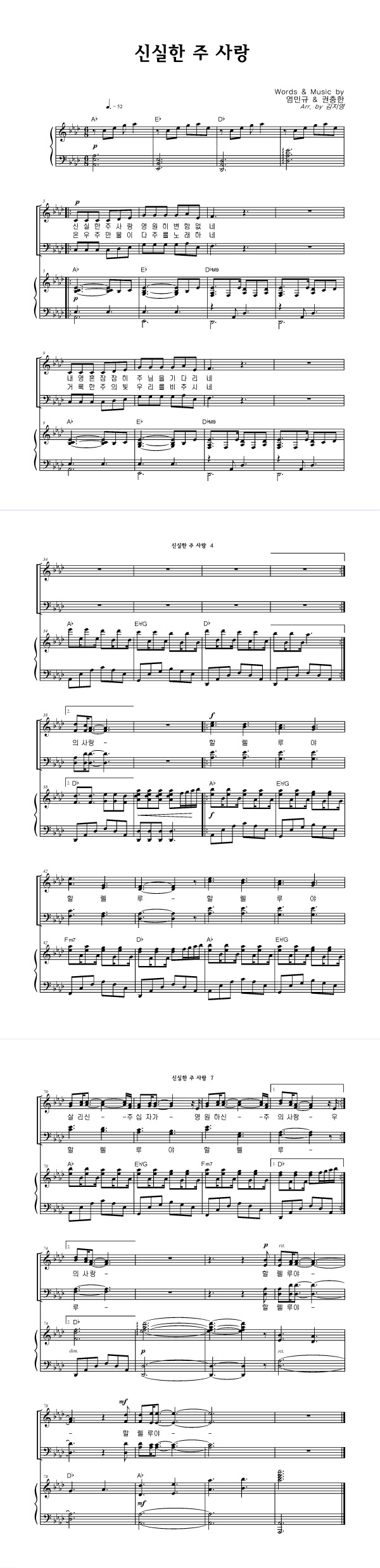 | 신실한 주 사랑 | 성가 4부 + 피아노 반주 |