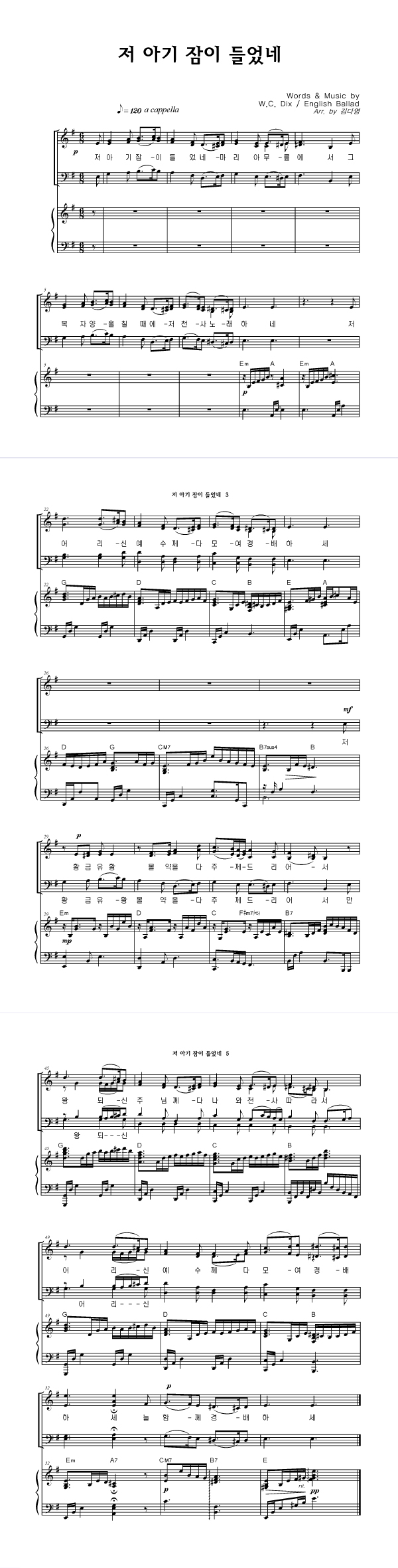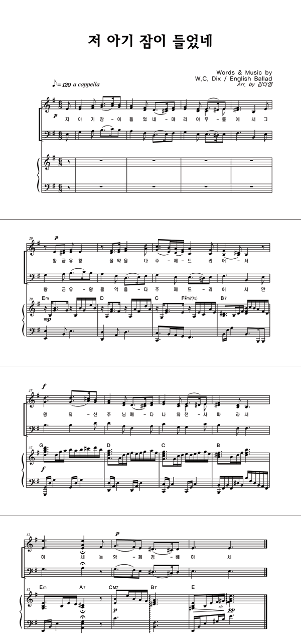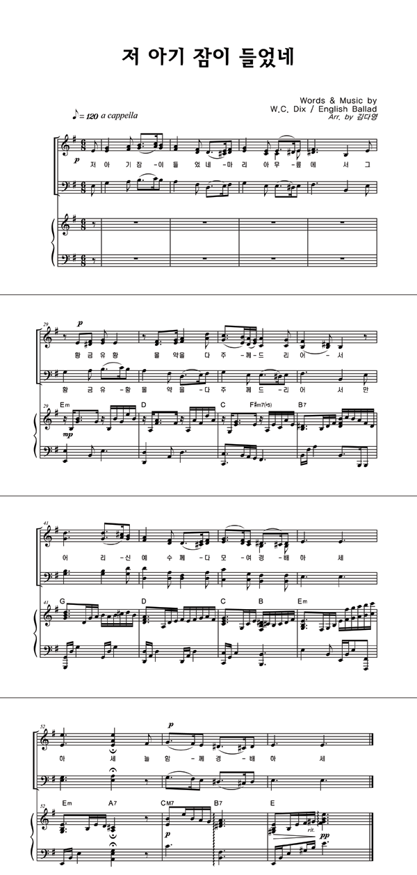 | 저 아기 잠이 들었네 (113장) | 성가 4부 + 피아노 반주 |