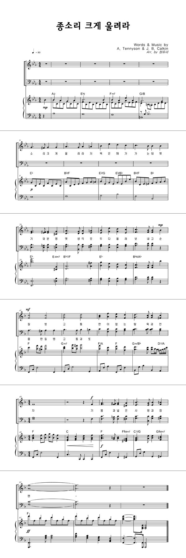 | 종소리 크게 울려라 | 성가 3부 + 피아노 반주 |