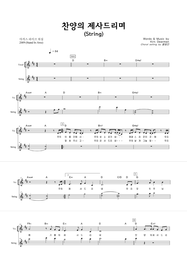 | 찬양의 제사 드리며 | 성가 2부 + 피아노 반주 |