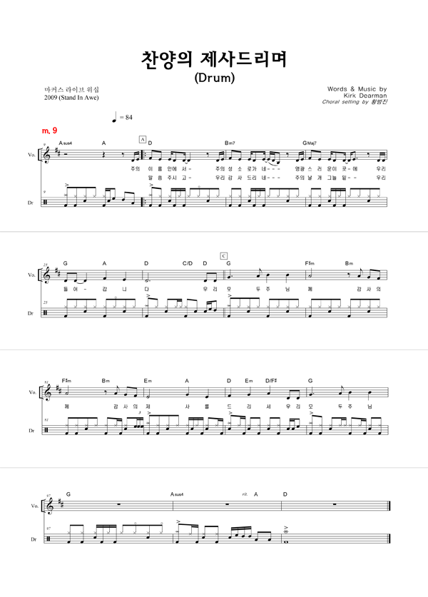 '찬양의 제사 드리며' 의 다른 악보형식