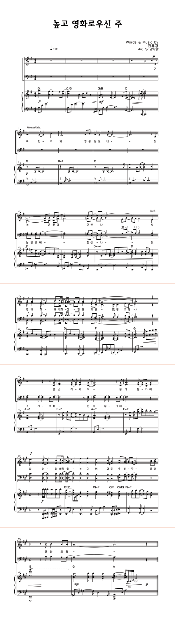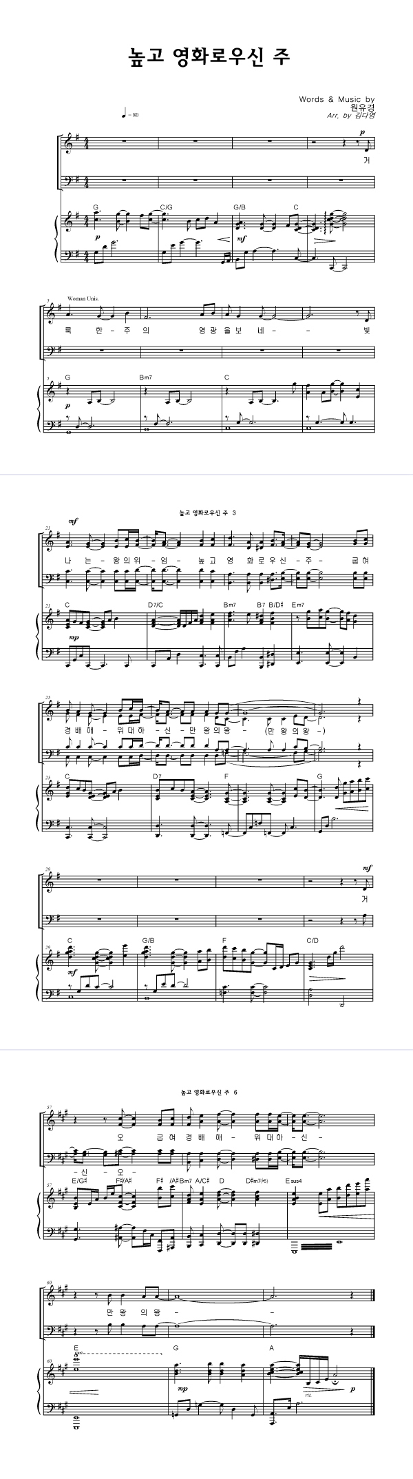| 높고 영화로우신 주 | 성가 4부 + 피아노 반주 |