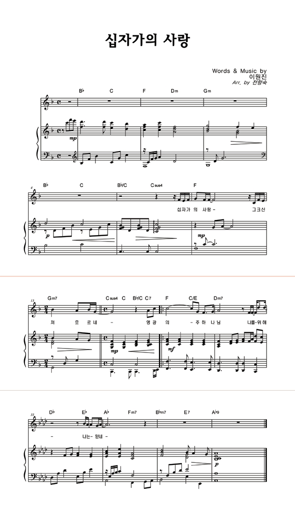 | 십자가의 사랑 | 성가 3부 + 피아노 반주 |