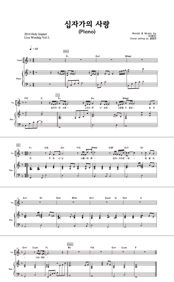 | 십자가의 사랑 | 성가 2부 + 피아노 반주 |