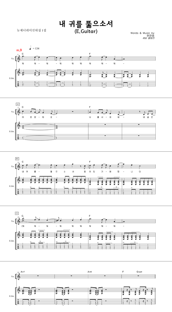 | 내 귀를 뚫으소서 | 성가 4부 + 피아노 반주 |