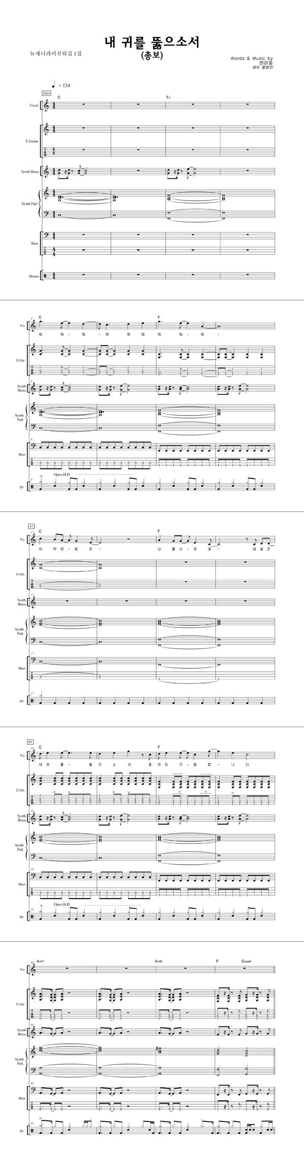 | 내 귀를 뚫으소서 | 성가 4부 + 피아노 반주 |
