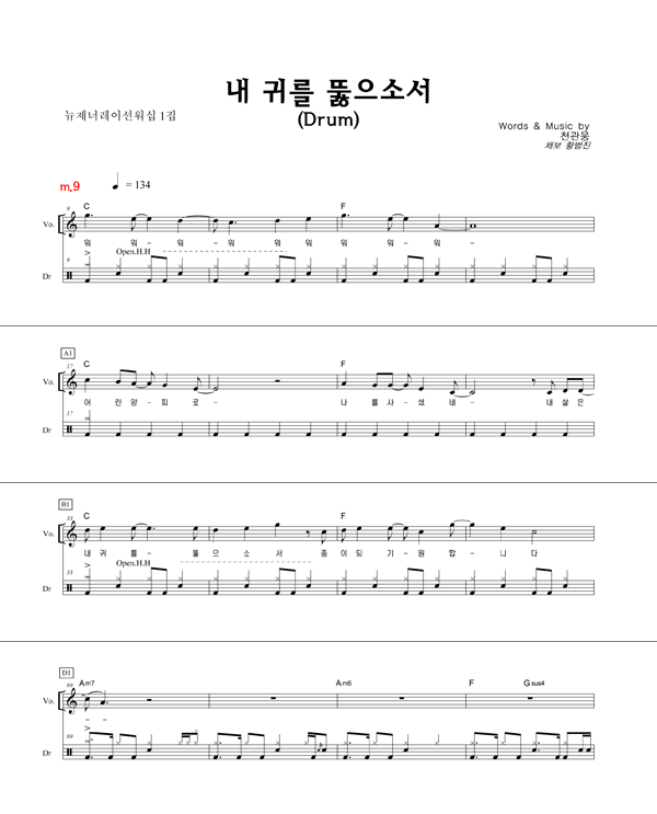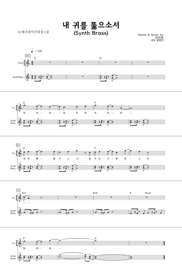 | 내 귀를 뚫으소서 | 성가 2부 + 피아노 반주 |