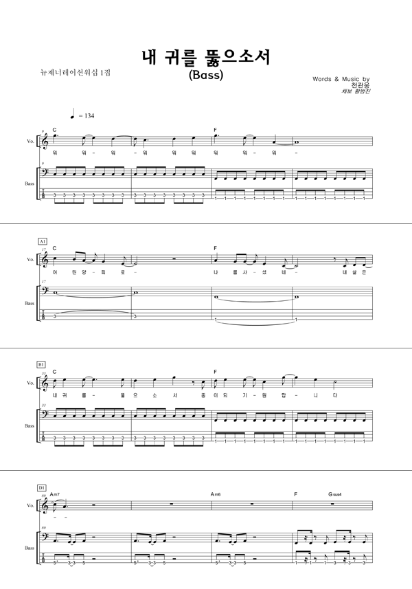 '내 귀를 뚫으소서' 의 다른 악보형식