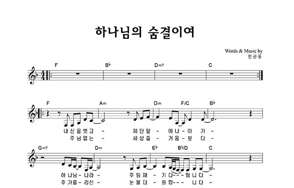| 하나님의 숨결이여 | 성가 2부 + 피아노 반주 |