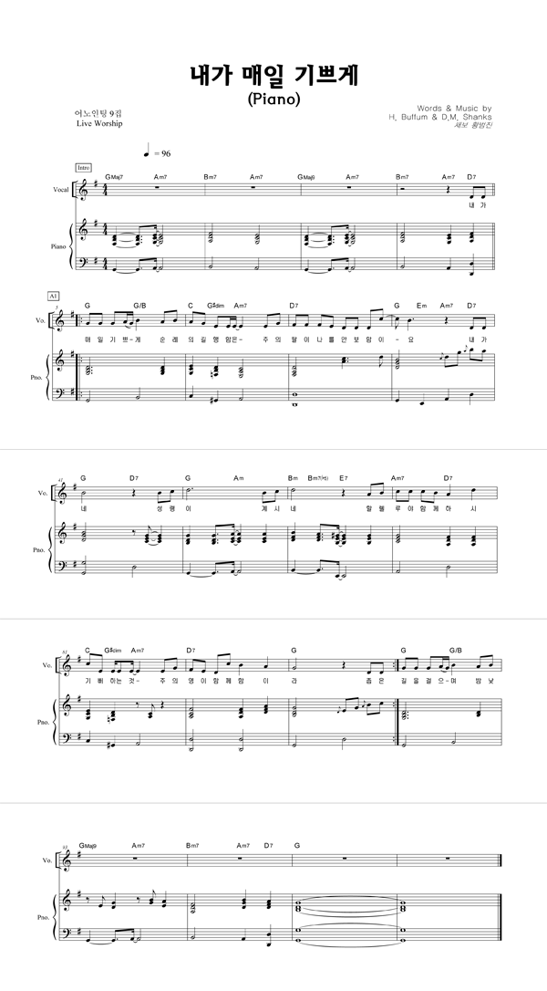 '내가 매일 기쁘게 (찬송가 191장)' 의 다른 악보형식