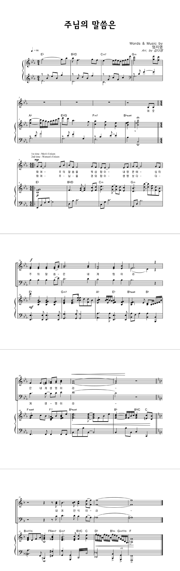 | 주님의 말씀은 | 성가 4부 + 피아노 반주 |
