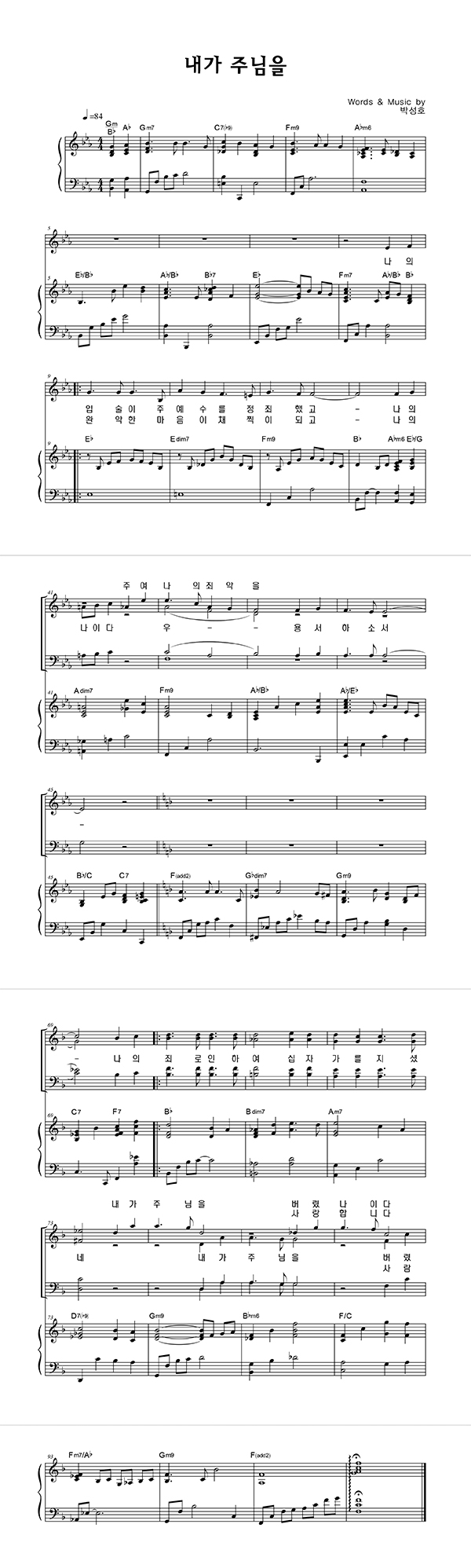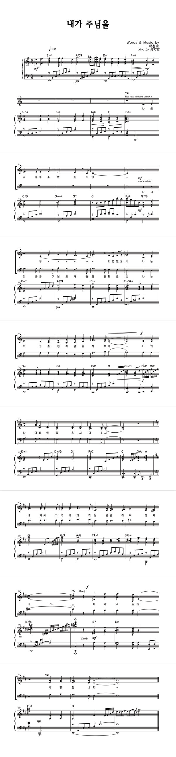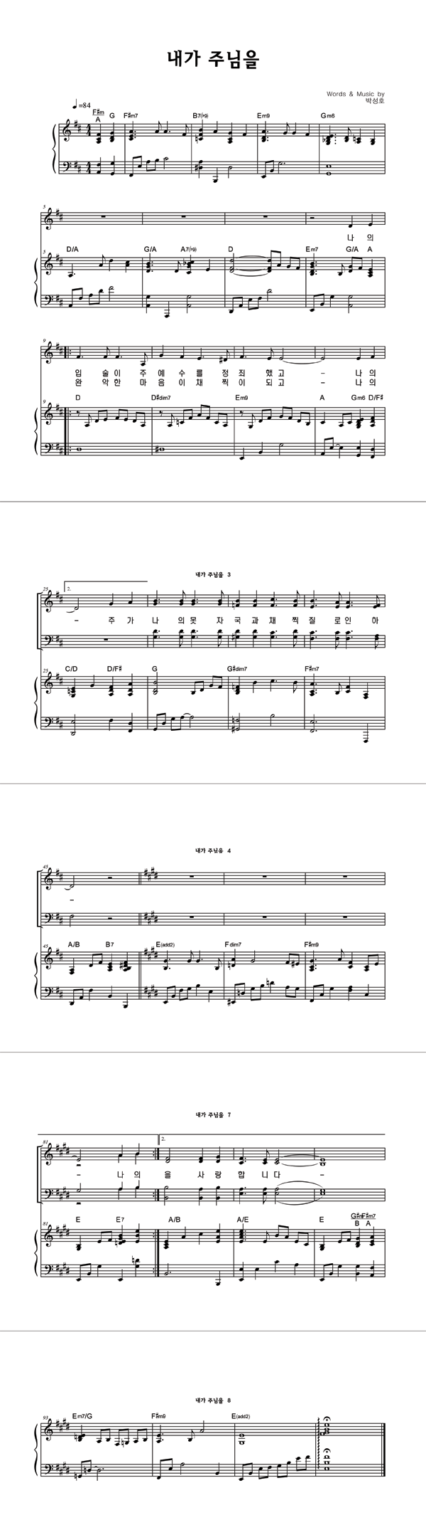 | 내가 주님을 | 성가 2부 + 피아노 반주 |