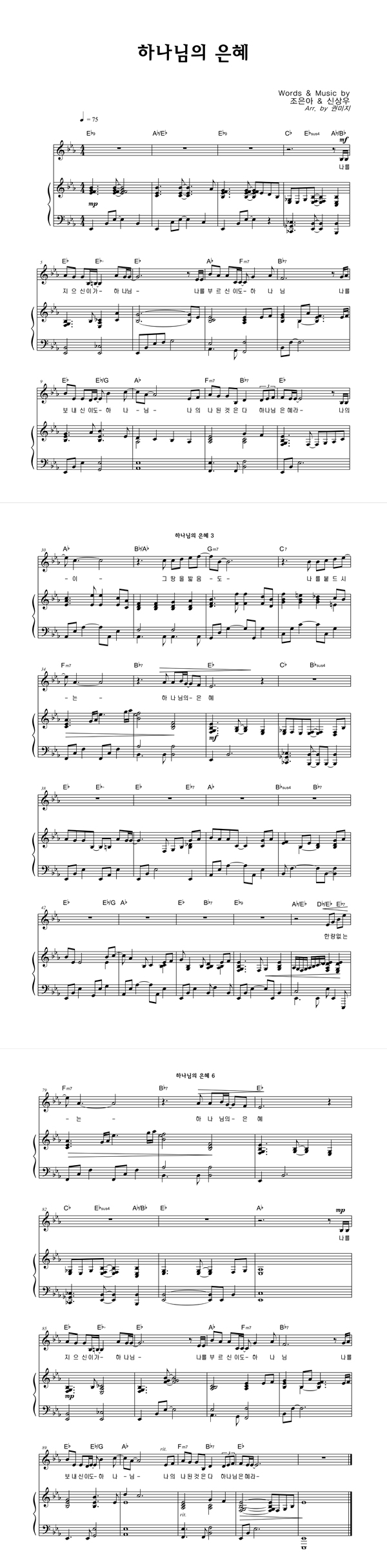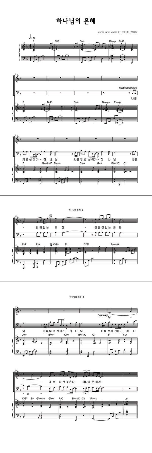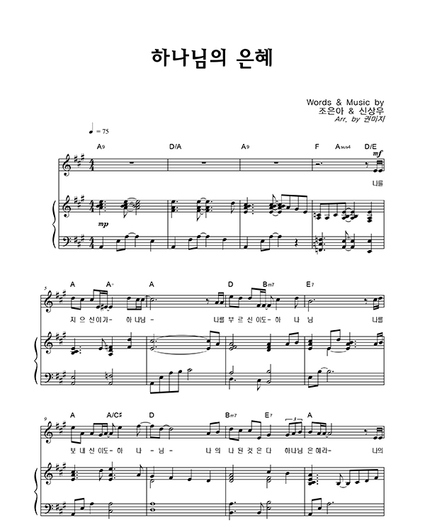 | 하나님의 은혜 | 성가 3부 + 피아노 반주 |