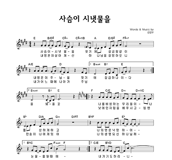 | 사슴이 시냇물을 | 성가 4부 + 피아노 반주 |