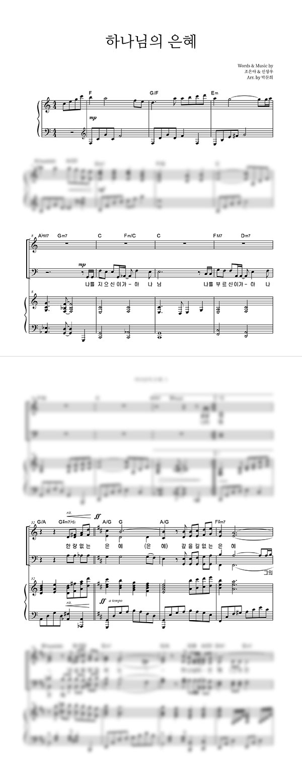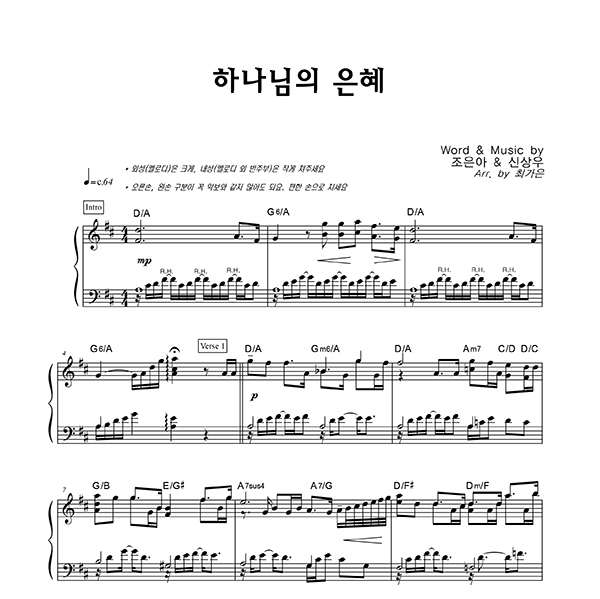 | 하나님의 은혜 | 성가 2부 + 피아노 반주 |