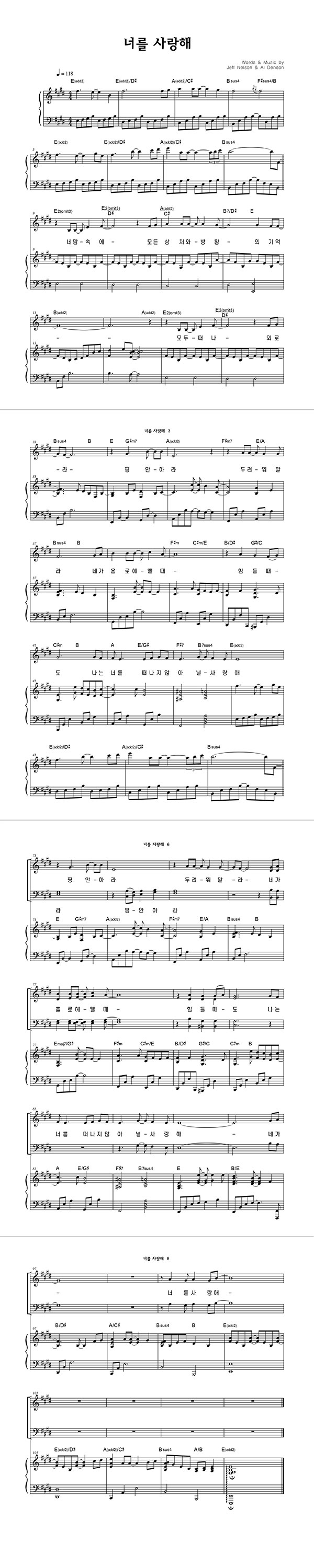 | 너를 사랑해 | 성가 4부 + 피아노 반주 |