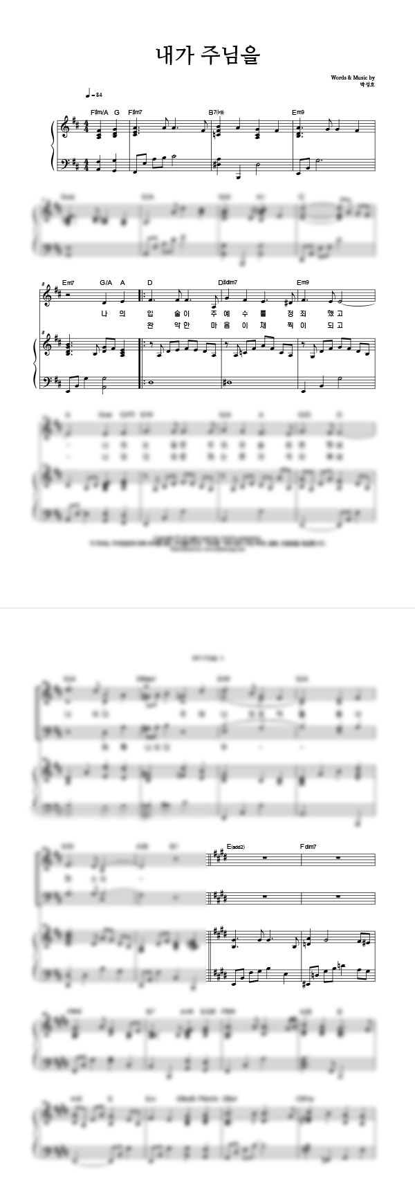 | 내가 주님을 큰글씨 | 성가 4부 + 피아노 반주 |