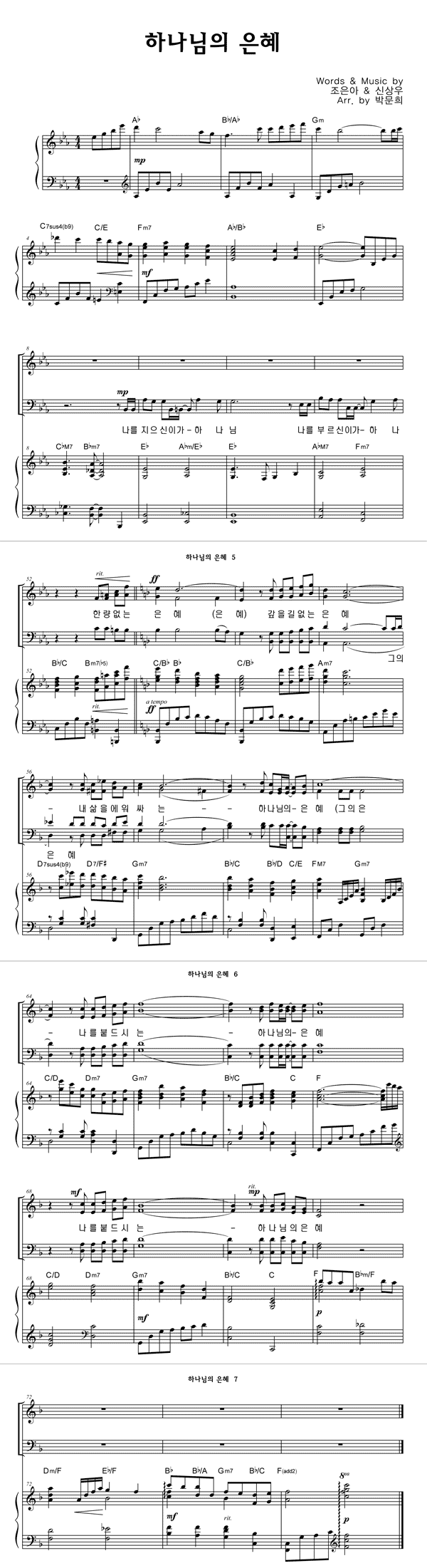| 하나님의 은혜 | 성가 4부 + 피아노 반주 |