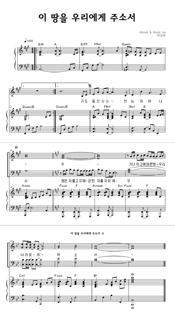 | 이 땅을 우리에게 주소서 | 성가 4부 + 피아노 반주 |