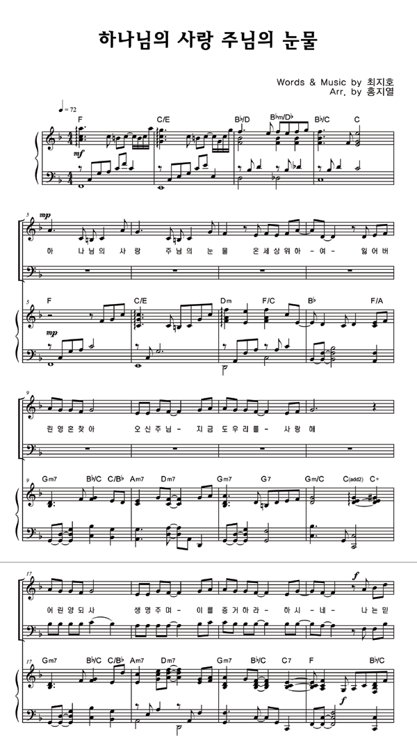 | 주님의 눈물 | 성가 4부 + 피아노 반주 |