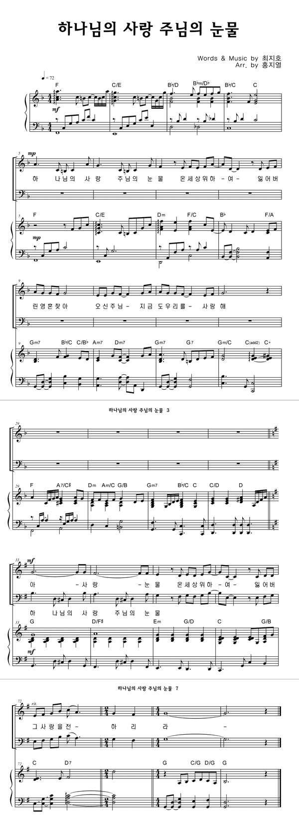 | 하나님의 사랑 주님의 눈물 | 성가 3부 + 피아노 반주 |