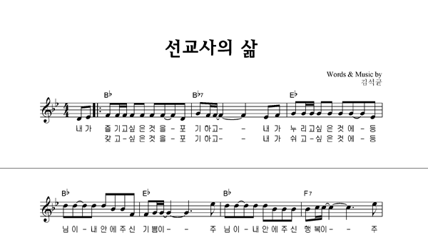 '김석균 복음성가 작곡집 17_선교사의 삶' 의 다른 악보