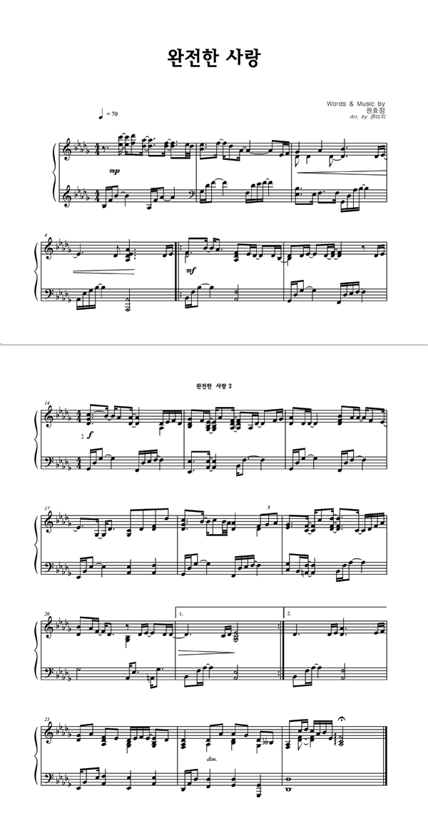 | 완전한 사랑 | 성가 2부 + 피아노 반주 |