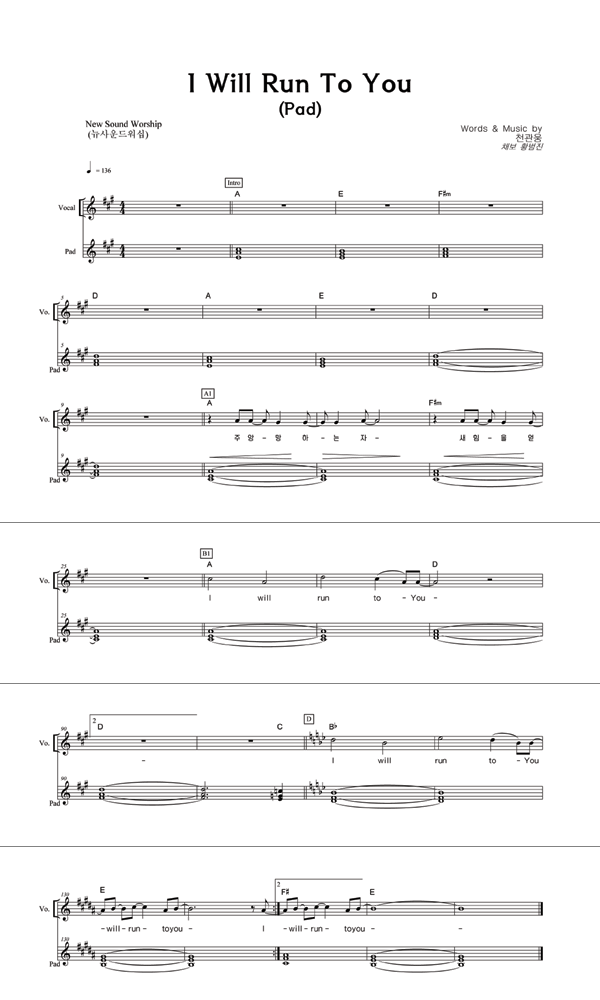 I Will Run To You 큰글씨 성가 4부 + 피아노 반주