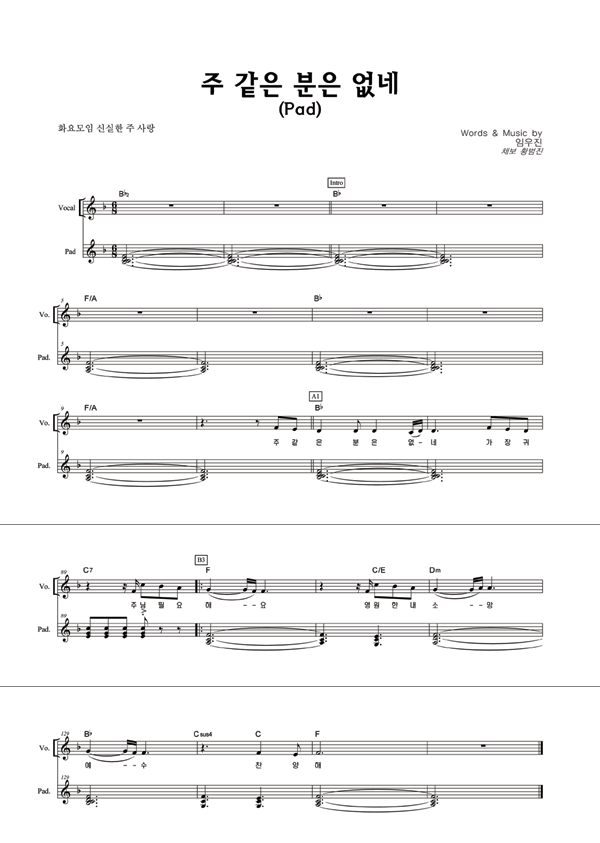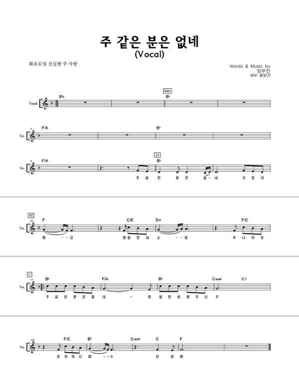 | 주 같은 분은 없네 | 성가 4부 + 피아노 반주 |