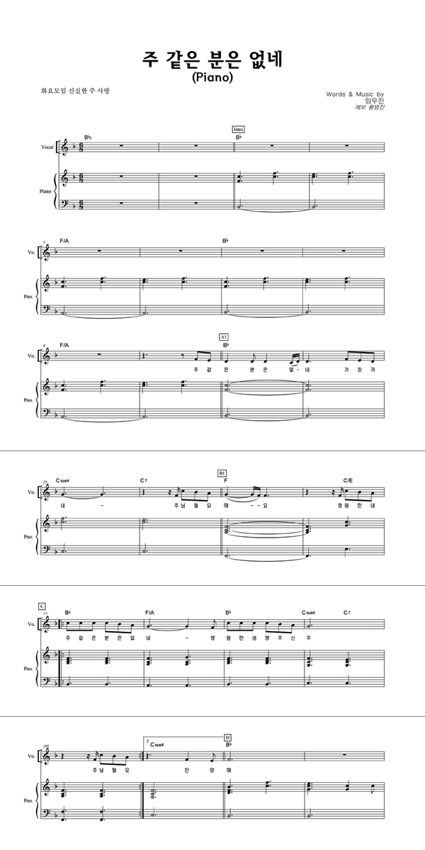 | 주 같은 분은 없네 | 성가 2부 + 피아노 반주 |