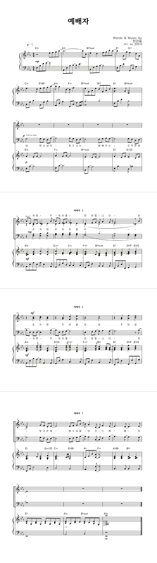 | 예배자 | 성가 3부 + 피아노 반주 |