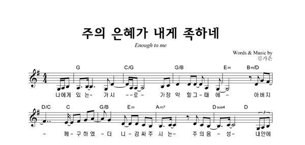 '주의 은혜가 내게 족하네' 의 다른 악보형식