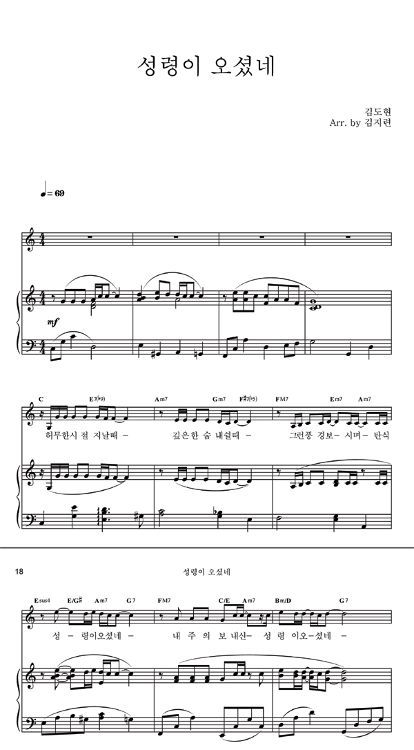| 성령이 오셨네 | 성가 2부 + 피아노 반주 |