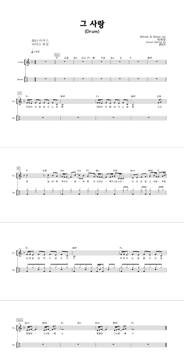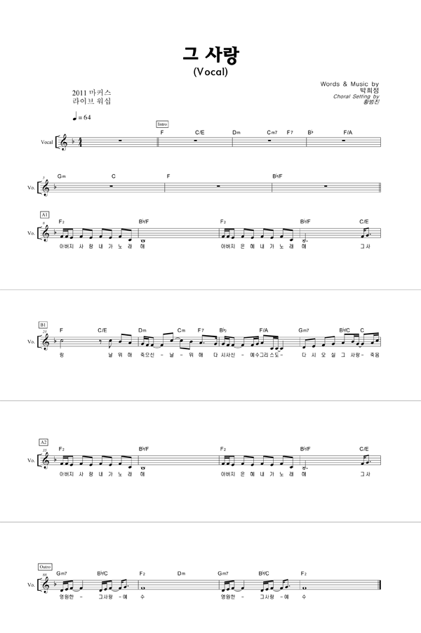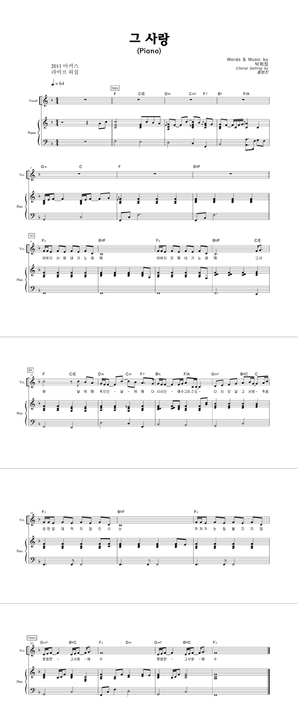 | 그 사랑 | 성가 2부 + 피아노 반주 |