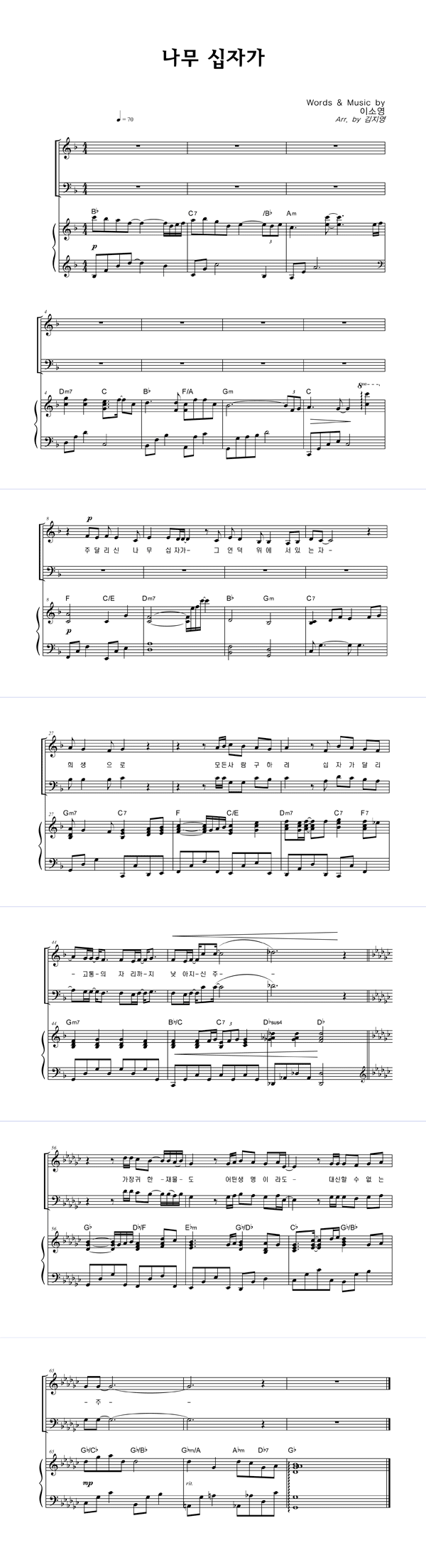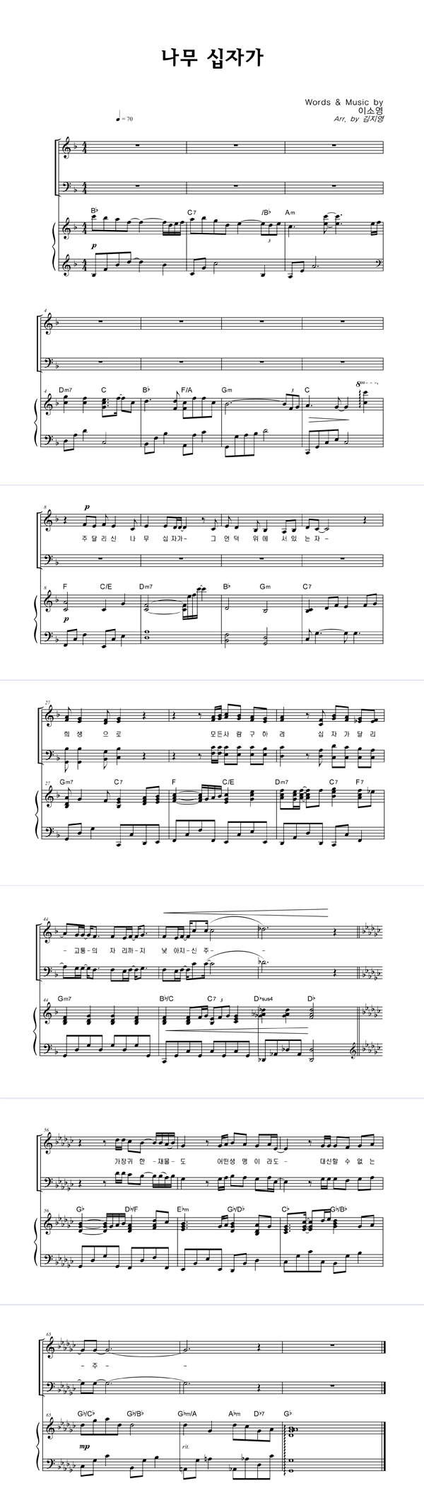 | 나무 십자가 | 성가 2부 + 피아노 반주 |