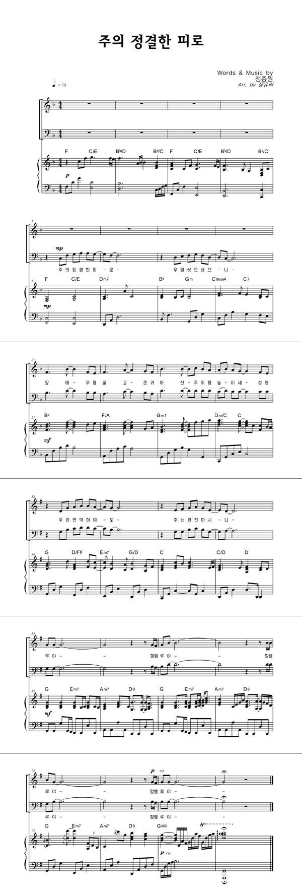 | 주의 정결한 피로 | 성가 2부 + 피아노 반주 |