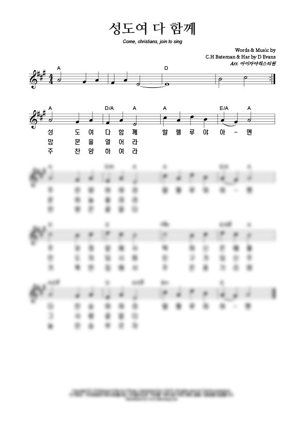 | 성도여 다 함께 (찬송가 29장) 큰글씨 | 성가 4부 + 피아노 반주 |