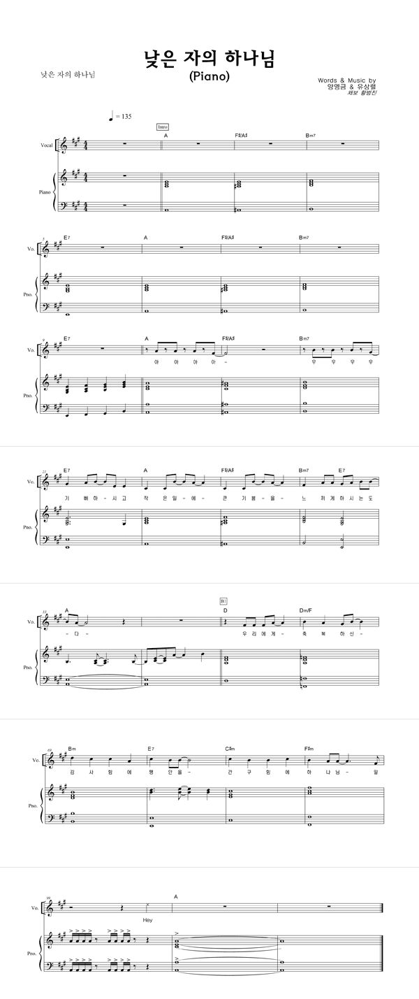 | 평강의 왕이요 | 성가 4부 + 피아노 반주 |