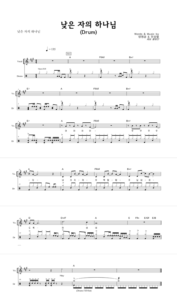 | 하늘 위에 주님 밖에 큰글씨 | 단선 |