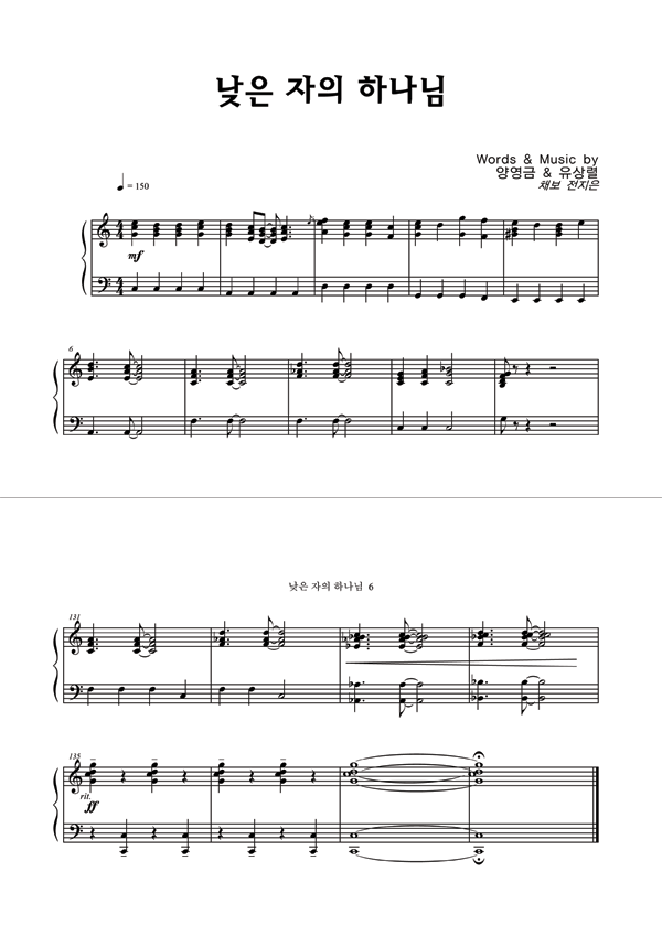 | 하나님은 우리의 피난처가 되시며 | 성가 2부 + 피아노 반주 |