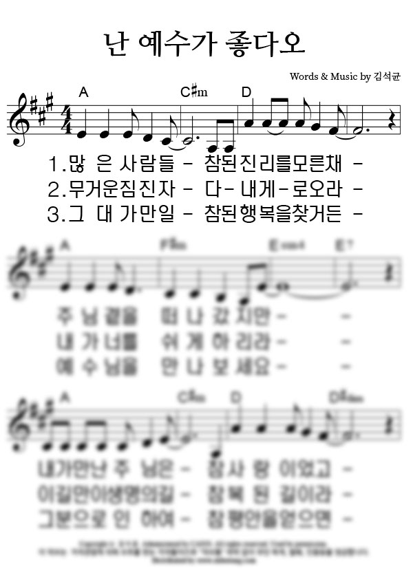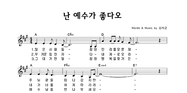 '난 예수가 좋다오' 의 다른 악보형식